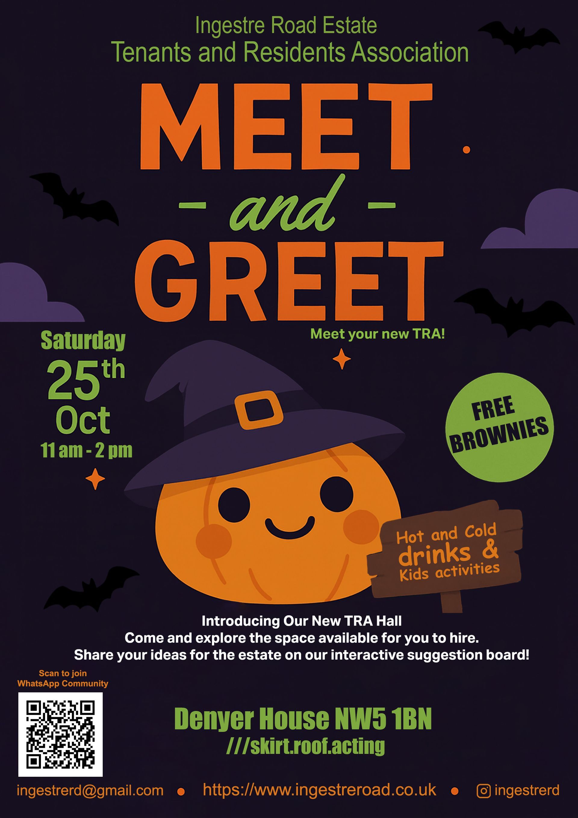 There will be free refreshments, cake and activities for kids. It's an opportunity for Ingestre Road residents to get together, see the hall that's available for us to use. Come along share ideas on how to improve our area and how the TRA can support those ideas.
